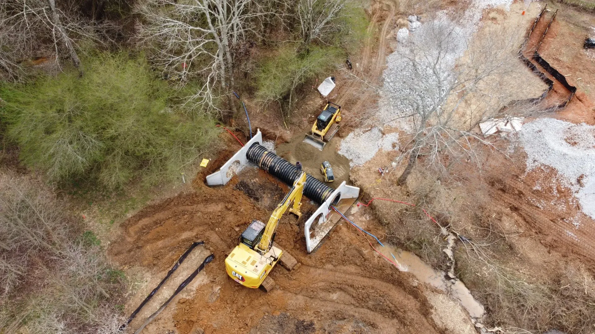 Access roads, parking lot drainage, stormwater management systems — commercial culvert replacement operates under tighter requirements and higher consequence for failure. Griffith brings commercial-grade equipment and the project coordination experience to handle culvert work within active commercial site constraints, including sequencing around tenant access and coordinating with site engineers when required.