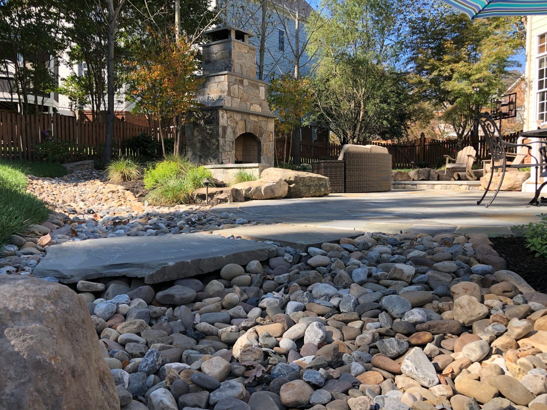 Backyard drainage that drains to nowhere isn't drainage. It's relocation. Griffith designs the complete system from the problem area to a functional endpoint.